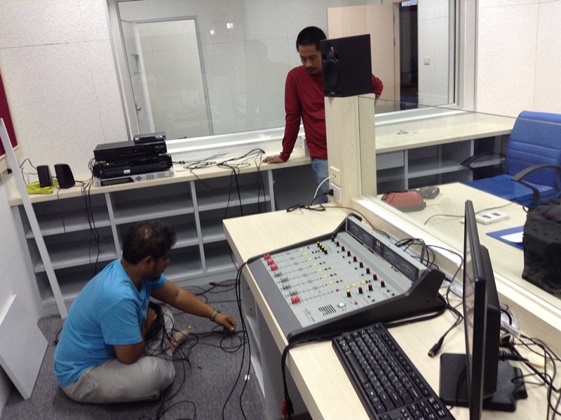 ภาพการติดตั้งห้องออกอากาศ และระบบเครื่องส่งวิทยุ สายนำสััญญาณ สายอากาศ