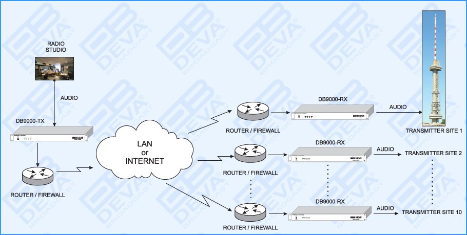 Audio Transmission over IP-based networks (DB9000-RX is required at the opposite site)