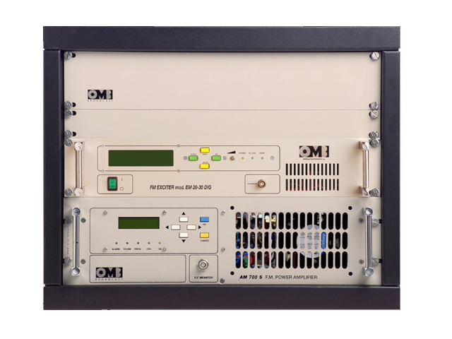 The EM 700 is a 700W FM transmitter made up of the EM 20/30 or the EM 25 DIG PLUS exciter and the AM 700 FM amplifier.