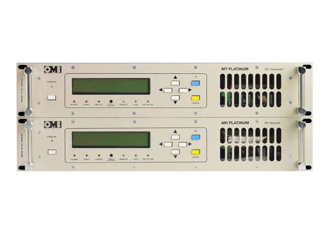 The MT is microprocessor controlled, and includes LCD display for the visualization of the most relevant transmission parameters (frequency (6-digit), forward and reflected power, modulation level), balanced Mono, Stereo (MPX). The MR receiver has the same visualization system as the transmitter. It includes balanced Mono and Stereo (MPX) outputs.