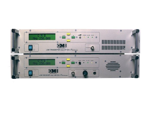 The MT/MR PLATINUM FM STL (Studio-to-Transmitter Link), is one of the latest OMB products. It is made up of a 20W (200~960MHz) transmitter externally synthesized in 20MHz sub-bands with a step of 25KHz (optionally 10kHz), microprocessor controlled, LCD display for the visualization of the most relevant transmission parameters (frequency, forward and reflected power, modulation level, pilot signal), balanced Mono, Stereo (MPX) and 3 SCA inputs and SWR fold back protection.