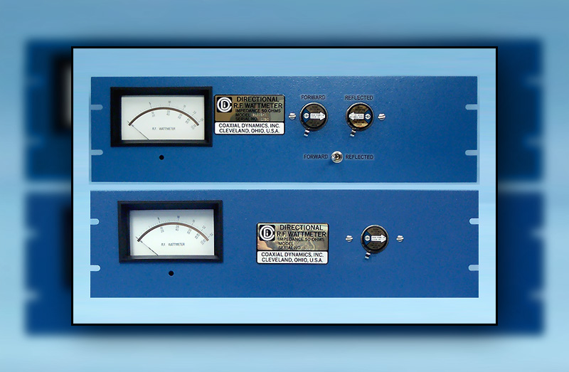 The Coaxial Dynamics series of Panel Mount Wattmeters are designed to measure RF power in 50-Ohm coaxial cable and transmission lines, and accept plug-in elements in the range of 100 mW to 10 kW full scale, and from 0.45 to 2300 MHz.